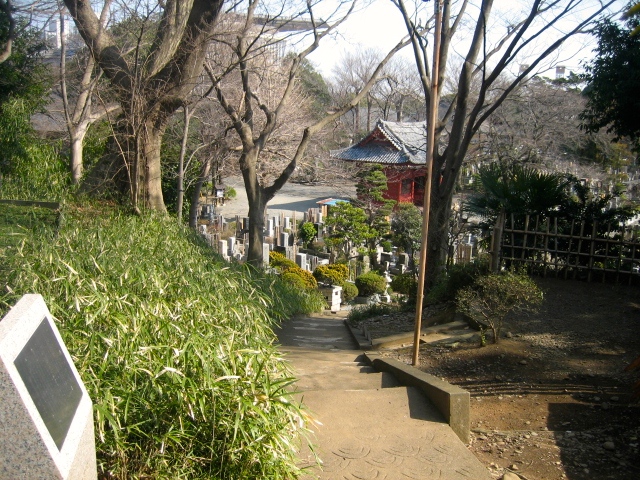 この坂の由来は明らかではありませんが、昔、この坂道を繁茂した竹や草木がおおいかぶさり、また周囲の木立などがうっそうとして薄暗く、それはあたかも通行する人の心に地獄への道のようなイメージを与えていたことによるのかもしれません。