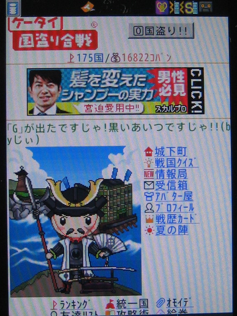 昨日は、ケータイ国盗り合戦山手の合戦をやっていました。