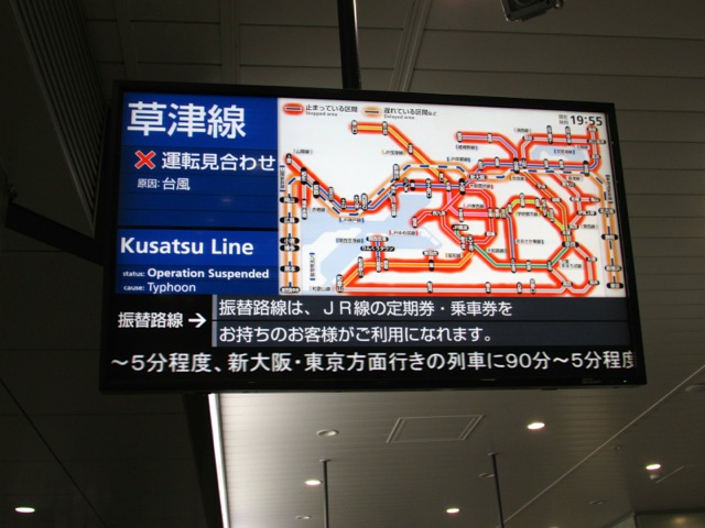 2週連続で来日の19号。この時間で名阪神のJRは全て運休中。