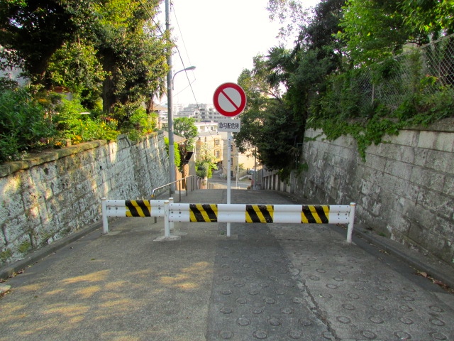 画像は、坂巡りの途中で見つけた、急すぎるため、車両通行止めになった坂です。
