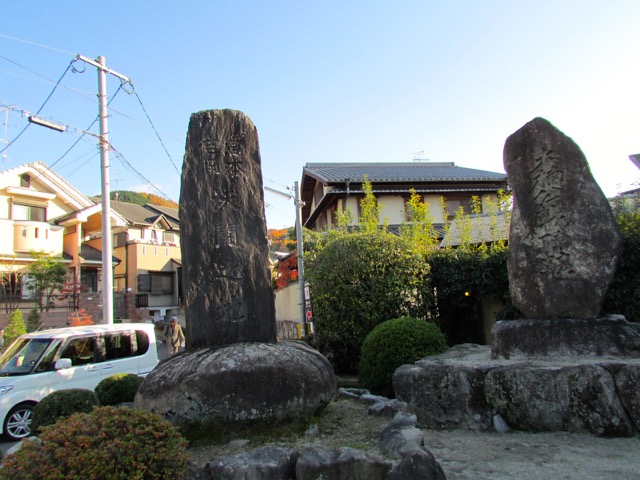 歩いていると石碑があって見てみると、宮本吉岡決闘之地と書いてありました。