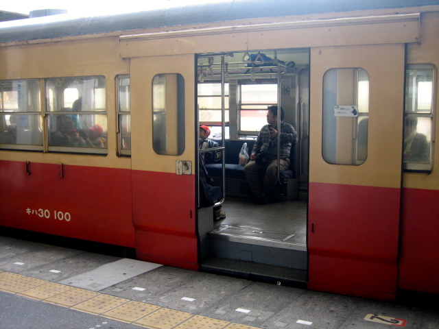 キハ30の外吊り式ドア。