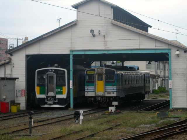 木更津駅の車両基地に目を向けるとキハ37と新型車両のE130が並んでいました。