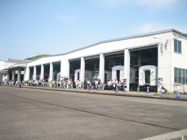 ここは、中に入っての見学は出来ませんでしたが、点検中の車両や塗装途中の車両が見えました。