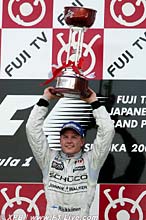 劇 的なフィニッシュが用意されていた今年の日本GP、決勝レースの結果はライコネンが優勝、同時にパートナーのミシュランには鈴鹿初優勝の快挙をもたらして いる。2位にはフィジケラ、3位にはアロンソが入り、2005年のF1シーンをリードしてきた2強が表彰台を独占。続く4位にはウィリアムズのウェバーが 健闘し、5位はB・A・R Hondaのバトン。期待された表彰台を逃しながらも、確実にポイントを獲得した。6位にはレッドブルのいぶし銀、クルサードが入り、7、8位にはミハエ ル、ラルフのシューマッハ兄弟が名を連ねている。また、日本中の期待を一身に背負って戦った佐藤琢磨は序盤のアクシデントもあって、最終的には13位。望 んだ結果は残せなかったものの、持ち前の粘りで無事、完走を果たした。