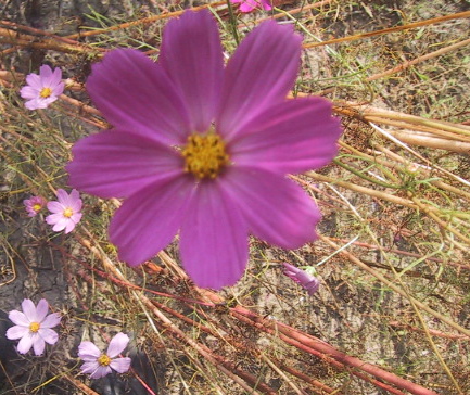 コスモスは、今月の台風でやられたこともあって、結構横倒しになってました。