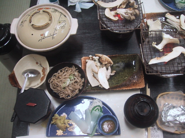 お昼は、松茸づくしの料理を堪能しました。キノコを焼くのって、どのタイミングが食べ頃なのか、いまいちわからなかったところにとなりの人が