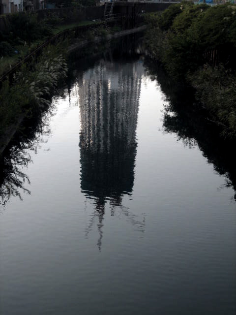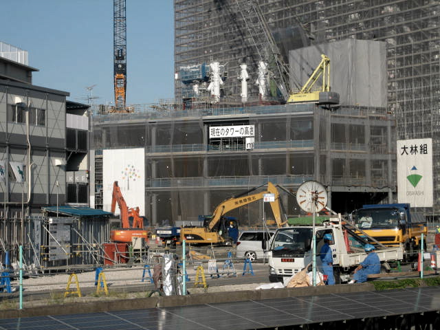上の白い柱は、タワー本体のもの。 上げられるのを待っています。
