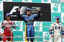 マ レーシアGP決勝レースは、フェルナンド・アロンソがポール・トゥ・ウィンの完全勝利で、シーズン初、通算2度目の優勝を果たし、開幕戦オーストラリア GPのフィジケラに続いて、ルノーに2勝目をもたらした。2位にはヤルノ・トゥルーリが入り、2002年のF1参戦以来、苦しい戦いを続けてきたトヨタ が、参戦53戦目のここマレーシアで、ついに悲願の初表彰台を獲得した。また、3位にはウィリアムズのニック・ハイドフェルドがつけ、表彰台はフレッシュ な顔ぶれとなった。