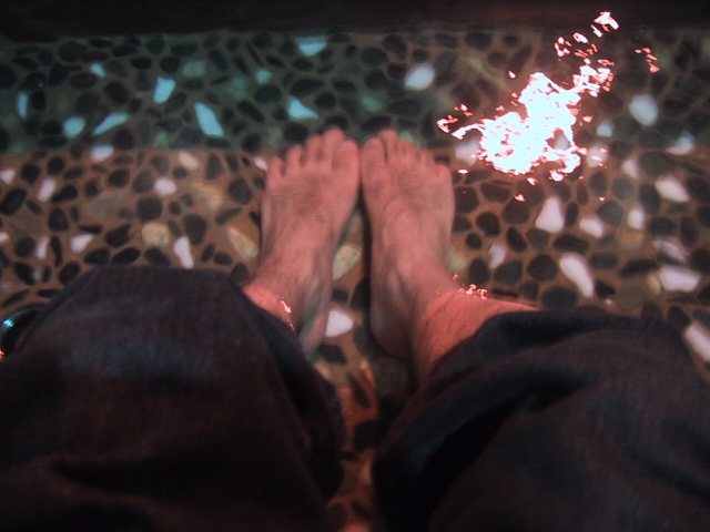 ゆっくり、お風呂につかって、最後に足湯。とても、気持ちいいです。広いお風呂っていいもんですね。