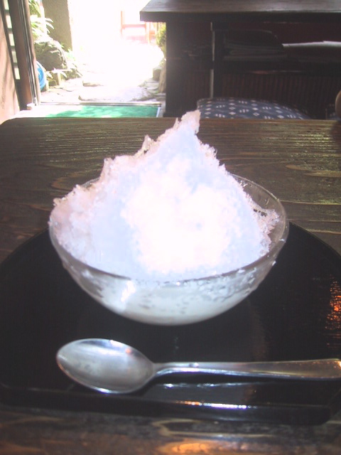 かき氷と甘酒なんて、季節的には、夏と冬で全く逆。甘酒といえば、初詣の時に冷たくなった体を温めるもの。それを一緒にして味わう。これが、おいしんですよね。甘酒のほんのりとした甘さあって、いい感じです。