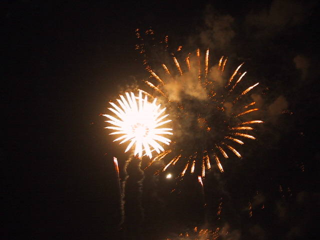 けっこう、間近で観ていたので煙硝の臭いはするは、火薬のかけらが飛んできたりと迫力満点でした。