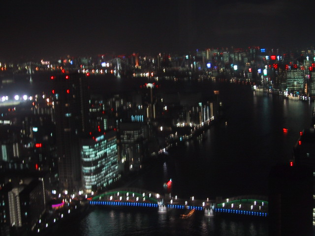 感想としては、眼下に隅田川があり、そこに見える勝ちどき橋の青いライトアップが印象的でした。