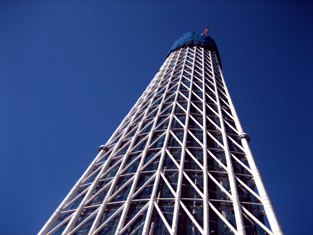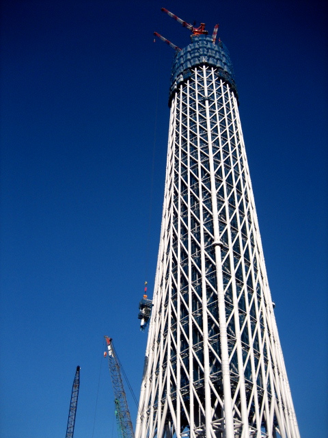 部材を上げています。この高さでも大変だと思いますが、これからさらに大変だと思います。