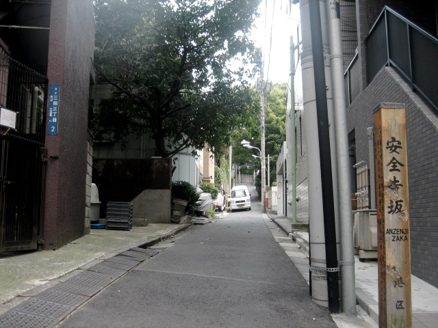 坂名となった安全寺はすでになく、右側は長運寺がある。