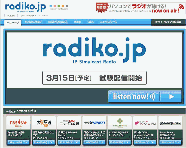 昨日、ネット回線を通してラジオが聴けるIPサイマルラジオ(radiko)の試験配信が始まりました。