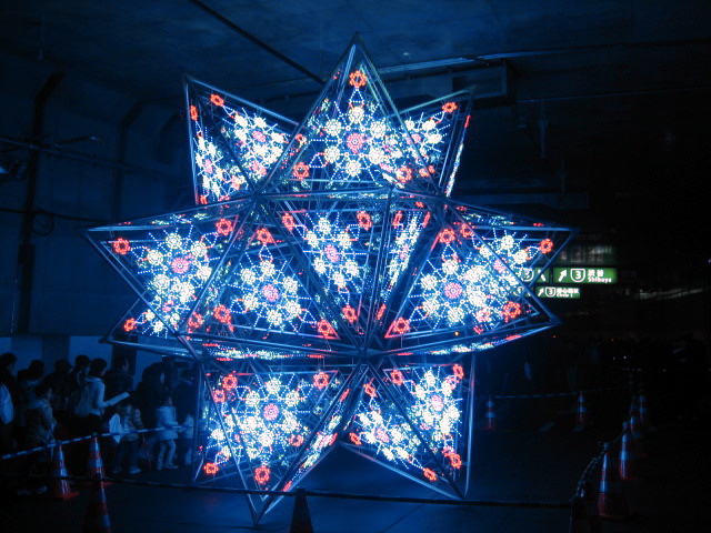 遠くに見える光のトンネルは、LEDを使ってライトアップされているものです。