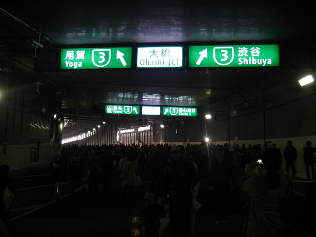 右側の渋谷方面は、すぐそこで閉鎖されているので、左側の用賀方面に進みます。