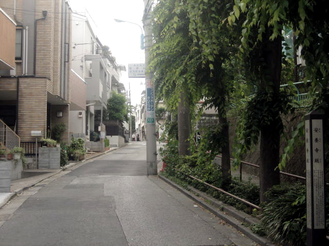 「安養寺坂は念仏坂の少し北の方を西に大久保余丁町に上る坂路をいふ。傍に安養寺あるに因れり。」とある。
