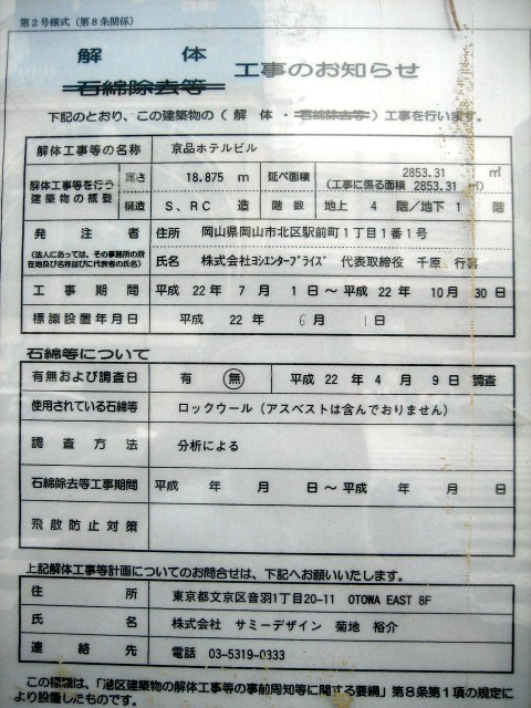 品川駅高輪口前にある京品ホテルがついに来月の1日から取り壊されます。