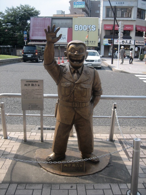駅前の両津勘吉像。