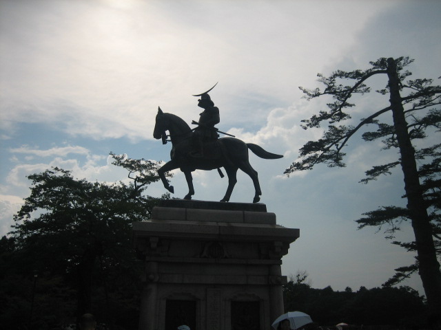 伊達政宗公像も逆光で、顔がはっきりとわかりません。