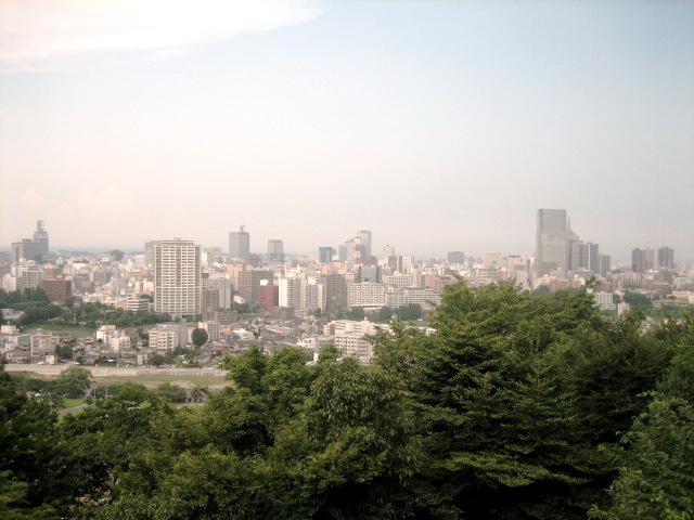 天守跡から見た仙台市内。急坂を登っただけあって、絶景です。