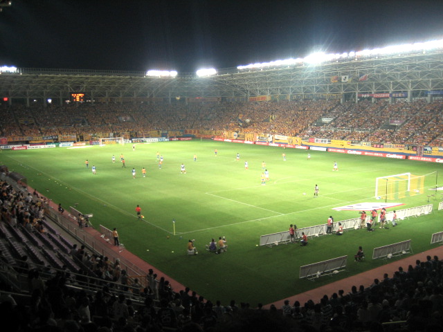 サッカー専用スタジアムということで、ピッチとスタンドが近い。席が後ろでしたが、よく観えました。