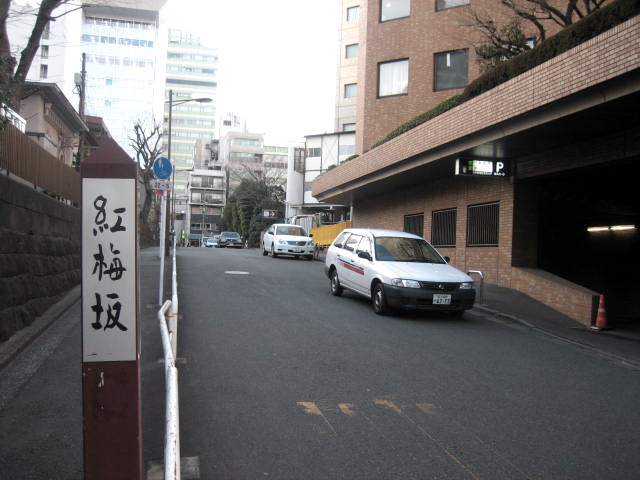 昔、近くの屋敷に紅梅の大樹があったからとも言われる。別名を光感寺坂、甲賀坂、塵坂、埃坂とも言われた。