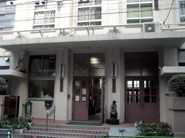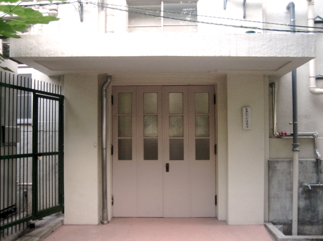 明石小、中央小に見られたアーチ型の入り口ではなく、四角形入り口。庇あるところがなんとなく中央小に似ている感じがします。