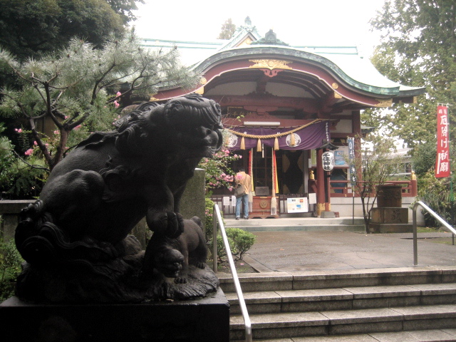 社殿と狛犬。