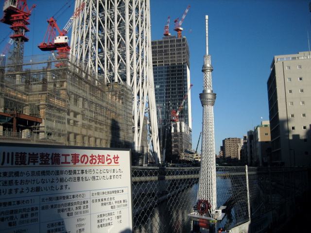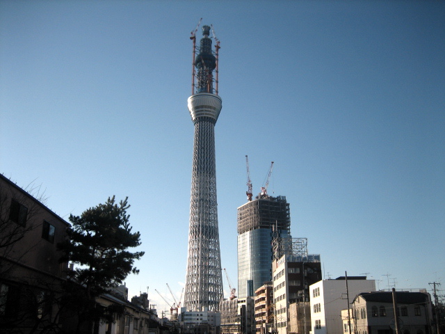 カーブミラーでスカイツリーを背景に自分撮りするための行列。