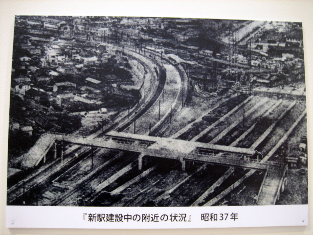 1962年(昭和37)新駅建設中の様子です。陸橋はおそらく今の北口ではないかと思われます。