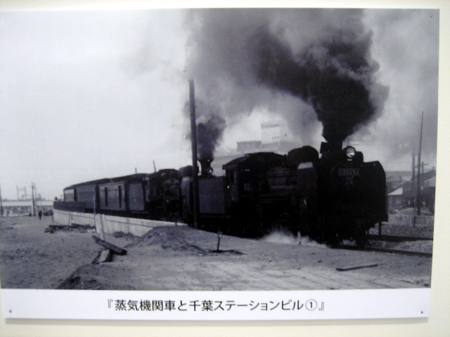 まずは、蒸気機関車が走っている写真です。機関車の後ろにうっすらと千葉駅が見えます。