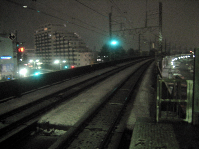 最寄りの駅の線路に降り積もる雪。