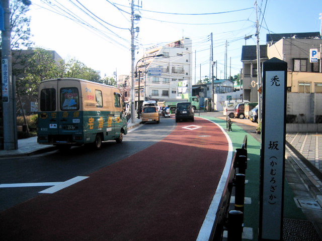 坂名の由来は定かではないが、近吾堂版の『江戸切絵図』(『大久保戸山高田之図』)には、「里俗カムロさか」とあり、江戸時代後期には「かむろざか」と呼ばれていたことが伺える。