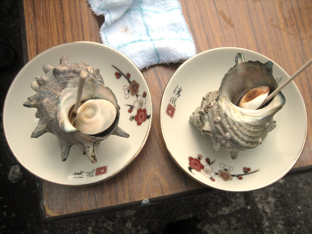 それで、驚いたのがサザエのつぼ焼きなんですけど、1個¥150という安さなので、思わず2個買ってしまいました。