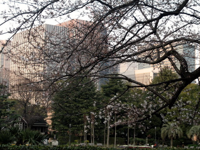 昨日、28日に桜の開花宣言を出したということなので、皇居周辺の開花状況を見てきました。