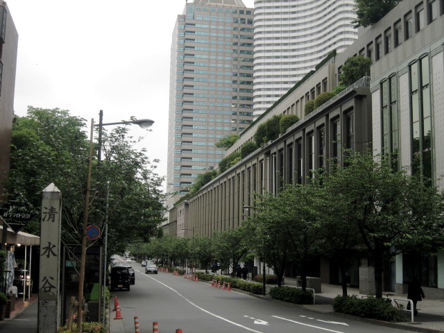坂下を南北に走る道筋が清水谷で、そこを喰違見附へと上る紀尾井坂につながっています。