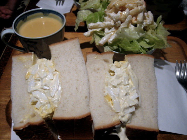 サンドイッチは、何種類か選べる中で、おいらの好きなタマゴサンドをチョイス。
