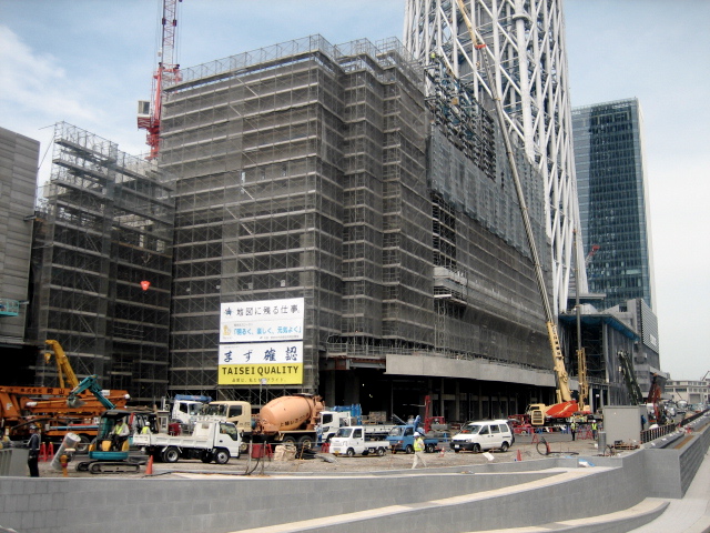 左側の足場が高くなっていますね。まだまだ、高くなるのでしょうか?