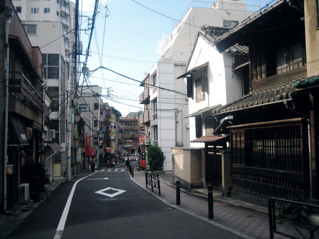 右に見えるのは、一葉ゆかりの伊勢質店です。(1982年(昭和57年)廃業)