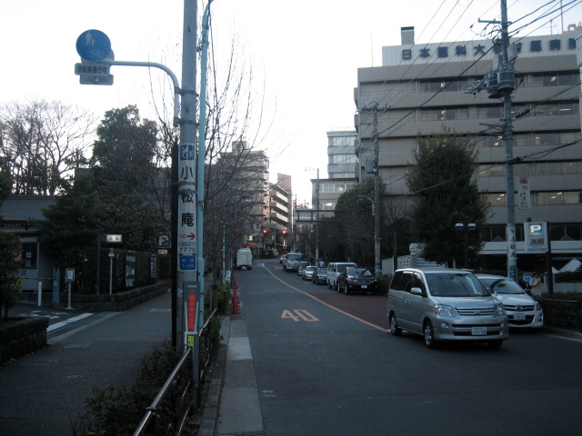 根津神社の裏門前を根津谷から本郷通りに上る坂道である。