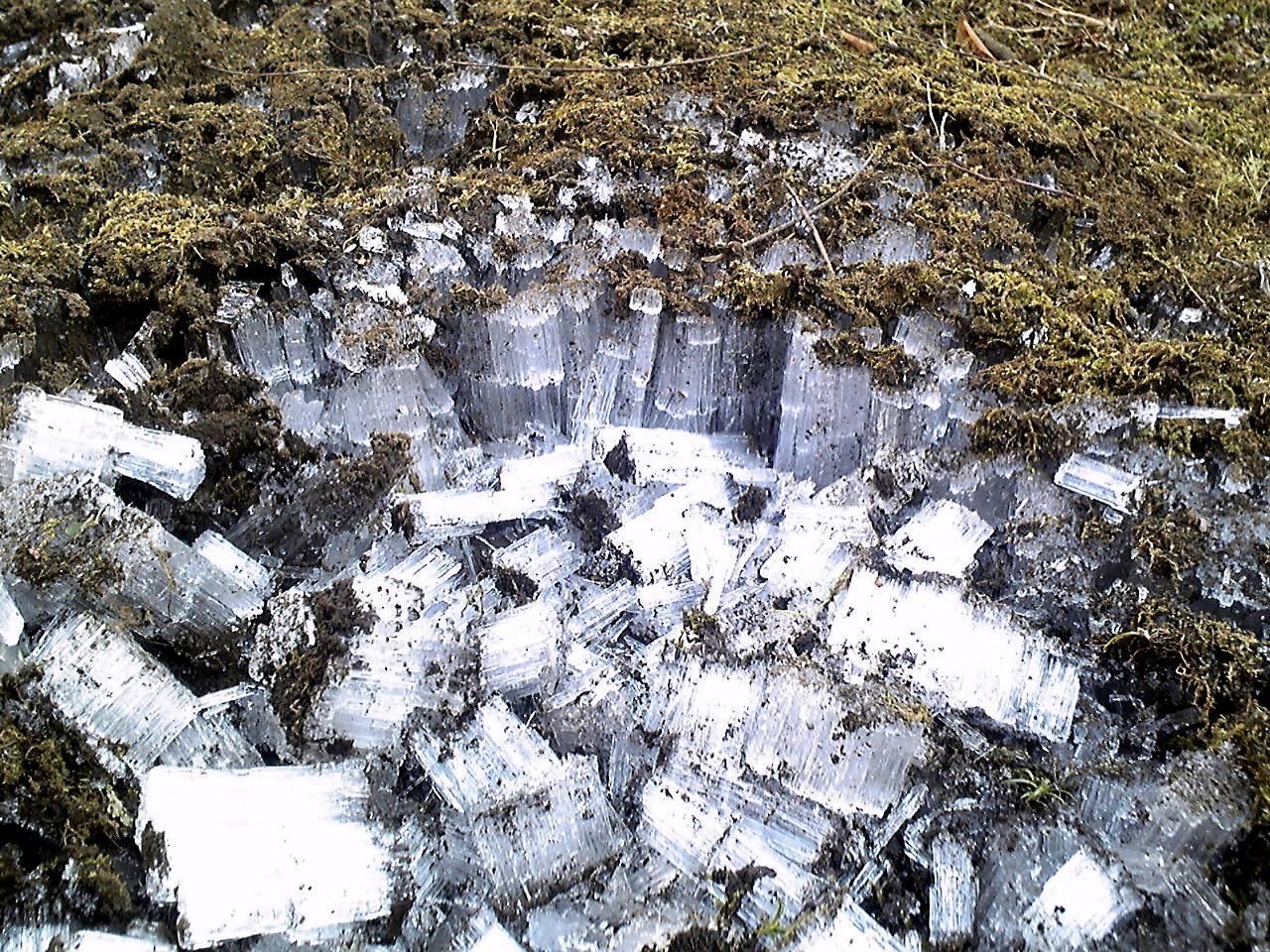 霜柱は、そんなに珍しくないけど、ここまで成長しているのは、ここ数年見たことがないです。