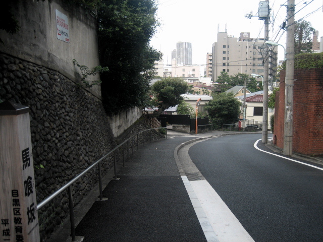逆S字にカーブを描く目の前の坂が馬喰坂。その昔、坂はとても急で、切り通しの工事を行った。しかし、頂上部は、庚申道が交差して思い切った工事ができず、風雨にさらされると、大小の穴で路面がが凸凹していた。道路に穴があいた状態を昔の方言で「ばくろ」といい、それが坂の名となったという。馬喰の字は当て字らしい。