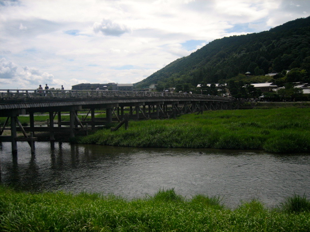 竹林の道を抜けると嵐山の渡月橋が見えました。