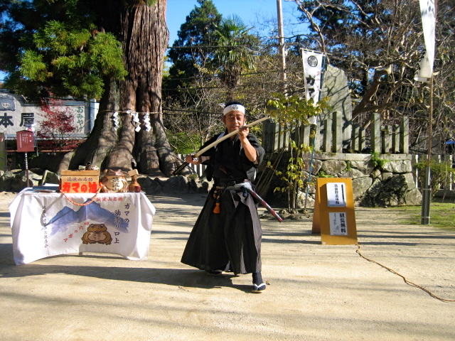 山門をくぐるとガマの油売りの口上をやっていました。