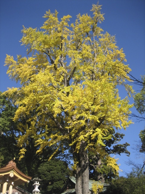 拝殿の近くに植えられていたイチョウが見事に黄色くなっていました。