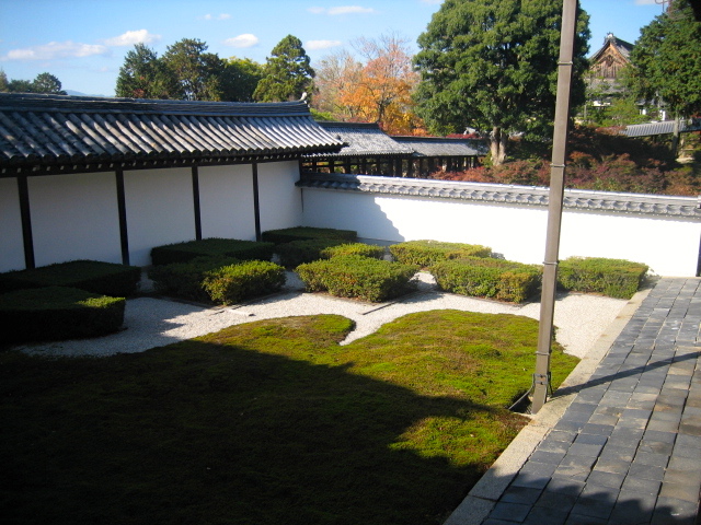 広大な方丈には東西南北に四庭が配されて、「八相の庭」と称されている。方丈の四周に庭園を巡らされたものは、東福寺の方丈のみである。