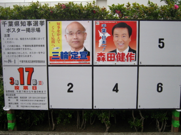 おいらが住んでいる千葉県知事選。現職と新人2人の争いだけど、実質一騎打ちの模様。
